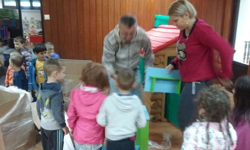 На изненађење деце и васпитача родитељи су донели и саставили играчке у вртићу.